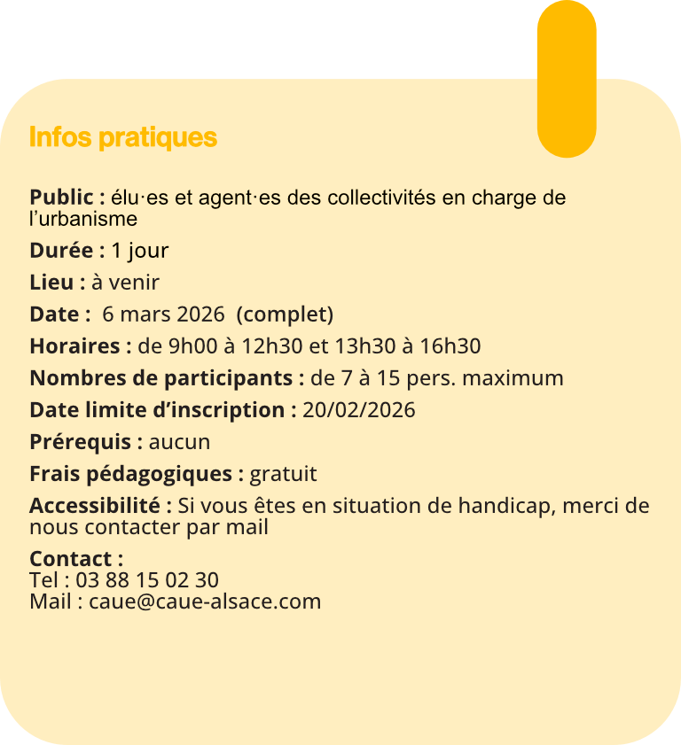 Que vous soyez en charge de l’instruction des permis de construire, de la définition des règles d’urbanisme ou de la conduite de projets publics, cette journée vise à renforcer votre capacité à dialoguer avec les professionnels, à anticiper les enjeux et à porter une vision ambitieuse pour votre commune et intercommunalité.